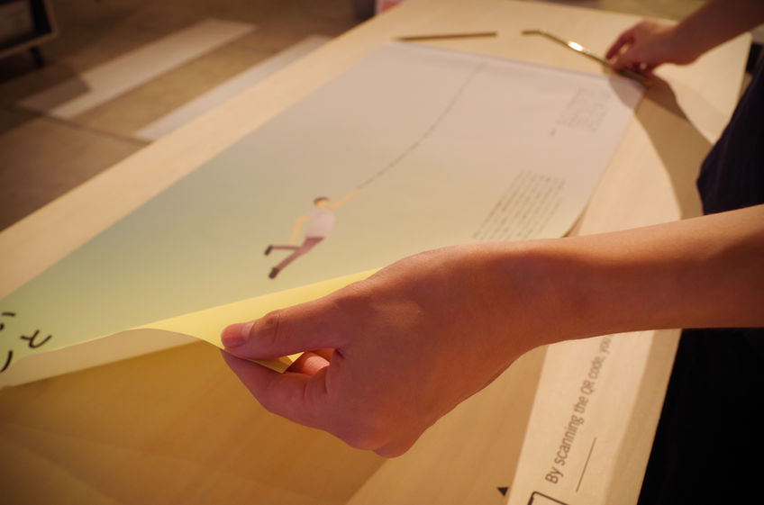 The concept was a “select shop for research and proposals.” Graphics containing research findings were printed on fabric and hung on clothing racks. Visitors could select a piece, place it on a tailor’s table-like desk, and view AR content that presented the research in three dimensions with animations by scanning it with a smartphone.